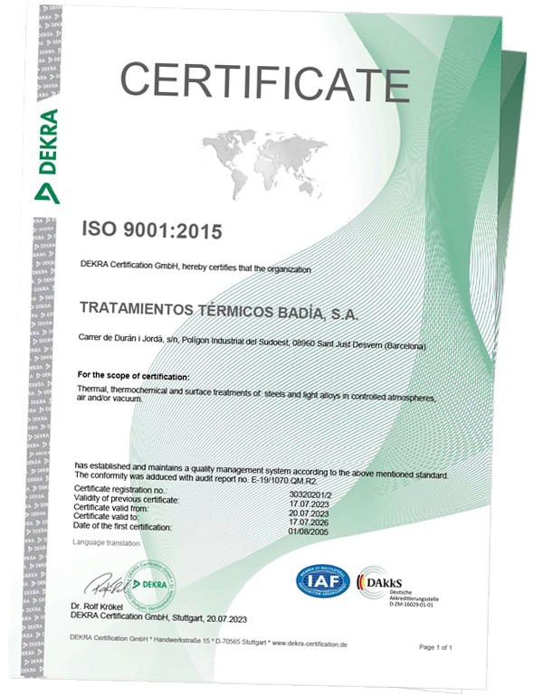 The vision of the company is to ensure that Tratamientos Térmicos Badía is a national reference in the field of thermal treatments of steel and light alloys.